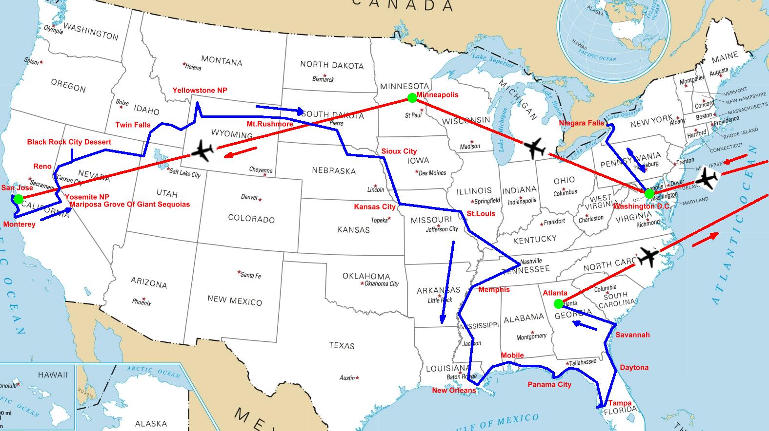 Hier schon mal unsere geplante Reiseroute (zum Vergrößern einfach drauf klicken):